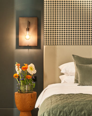 Exuding both style and substance, the design incorporates herringbone wooden floors, an Inchyra Blue and warm walnut colour palette, as well as furniture by Pols Potten, Gubi and Artisan among others. Modern floral artworks are limited editions by Amsterdam-based Dutch artist Jan Commandeur and photography that reflects the building’s history blends the old with the new. More functional features and amenities are on hand to seamlessly complement a guest’s stay.